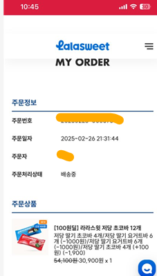 혹시 몰라서 주문번호와 주문자는 가렸습니다. 현재 라라스윗에서 신상 기념 할인을 하고 있더라구요. 라라스윗 아이스크림 단가가 높다보니 저는 주로 이렇게 신상 이벤트를 할 때 구매하는 편입니다. 아이스크림은 제가 늦은 저녁에 구매를 했는데 다음날 발송하여 2일째에 바로 왔습니다.